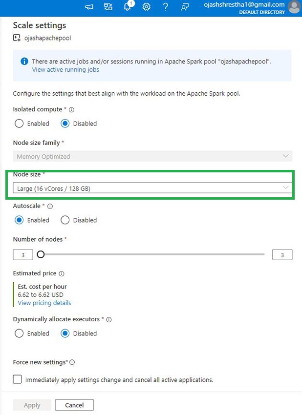 Note: If in case, some errors pop up, you can easily scale your Apache Pool from the Scale Settings. I just went from 16GB Node size to 32 vCores, 256GB in seconds. But, we aware, it’ll cost you as per your usage increase in Node size. Also make sure to select the Apache Pool too.