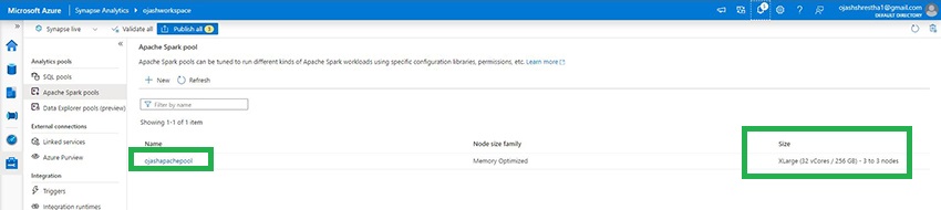 - Azure Synapse Analytics – Create Apache Spark Pool