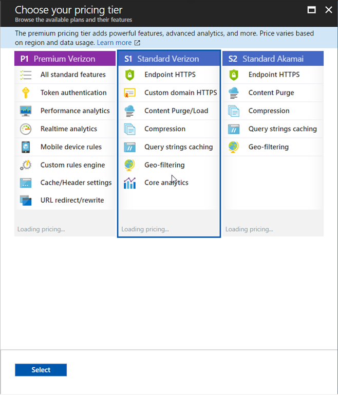 Please be sure that you are checking your price tier and, as per your needs, you can select one. Here, I am selecting S1 Standard Verizon.