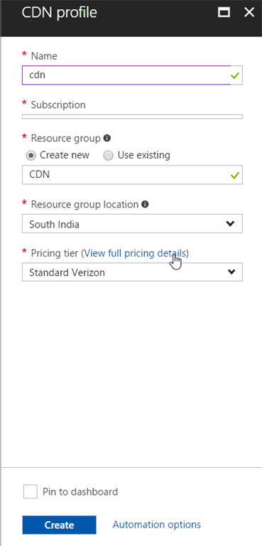 Our next step is to create the CDN profile. To do so, you must fill the form according to your preferences.