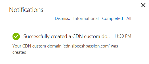 We have successfully created an Azure CDN, but is that really over? For some people it is, but for others it is not. Let’s see why. We have an option to add a custom domain for our CDN, that’s cool right? If you noticed well, we have created a CDN. Here in this step, we are going to see how we can get a custom domain for our CDN.