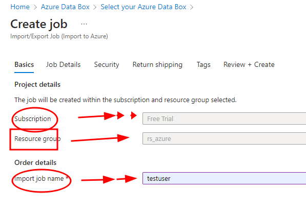 Step 6. Once we select it, it will move to another phase, Create A Job. We have to provide name, subscription, and region details again.