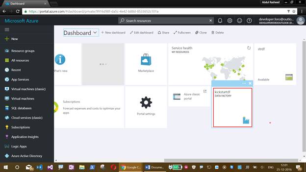 Login to Azure portal. Move to Azure Data Factory account. Click on the Data Factory editor.
