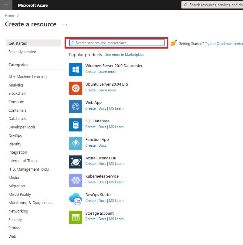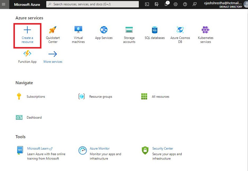 Visit the Azure Portal. You’ll be welcomed to the home page as you sign in.