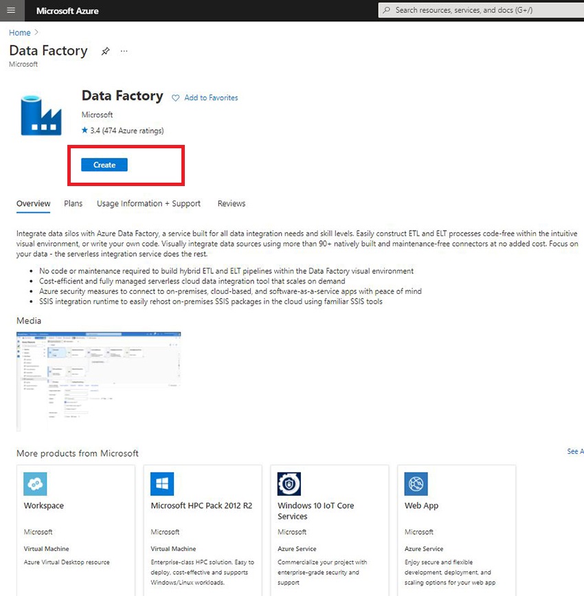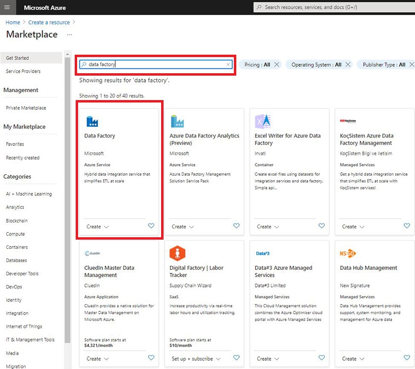 Firstly, we need to create Azure Data Factory initially. So, from the home page, click on Create a Resource.