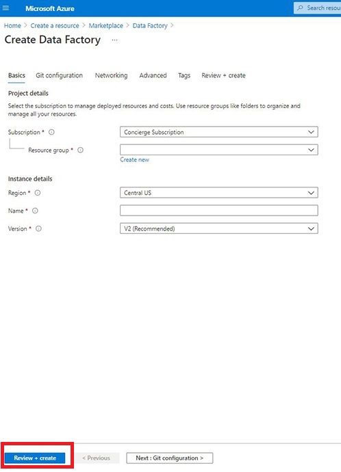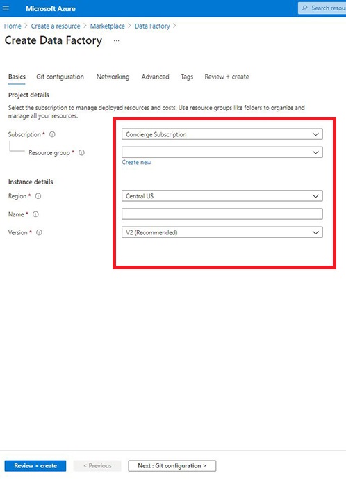 Fill up the details for the Project with your Subscription, Resource Group and Instance Details. Select V2 for the Version