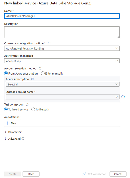Now, Configure the service and fill up the required details to test the new connection and create the linked service. You’ve finally setup the new Azure Data Lake Storage Gen2.