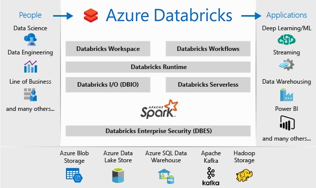 - Azure data bricks have tight integration with Azure data stores like ‘SQL Data Warehouse, Cosmos DB, Data Lake Store, and Blob Storage’ as well as the BI tool like Power BI to view and share the impactful insights.
