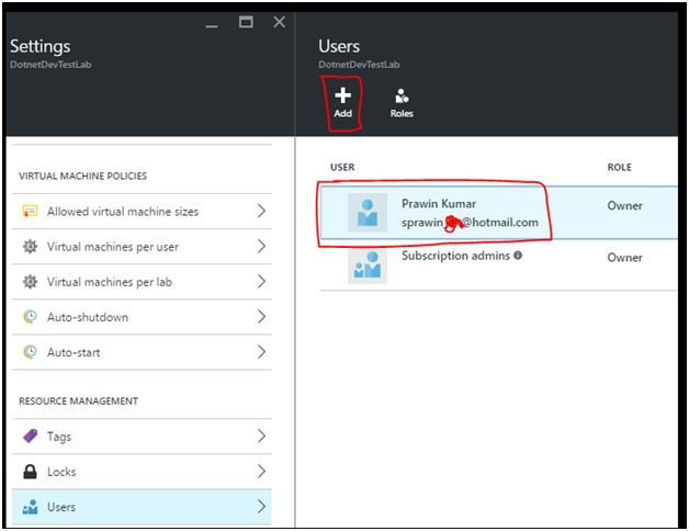 Let’s try adding a new user to the DevTest Lab “DotnetDevTestLab” that we have created in one of our previous articles Azure DevTest Labs: A Self-Service Sandbox Environment – Basics.