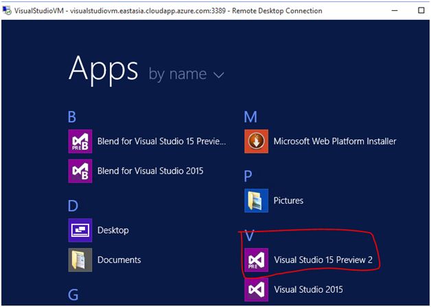 Note that a shortcut to Chrome is also available, as we have selected Chrome as an artifact. (It would have been very nice if we also had a shortcut for Visual Studio “15” preview as well).