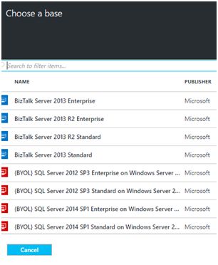 Click “Virtual Machine” and it will take you to the “Choose a base” blade, which displays all the configurations that Azure supports.