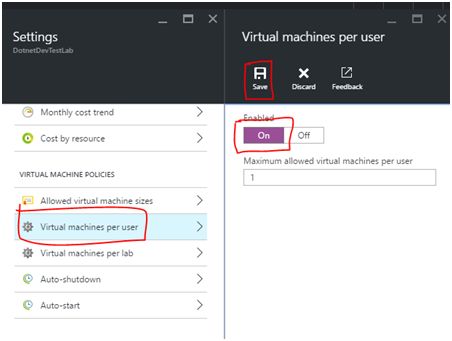Lab owner (who created the lab) can use this setting to allow the number of Virtual Machines that the Users of the Lab can create by clicking on the “Virtual Machine per user” setting.