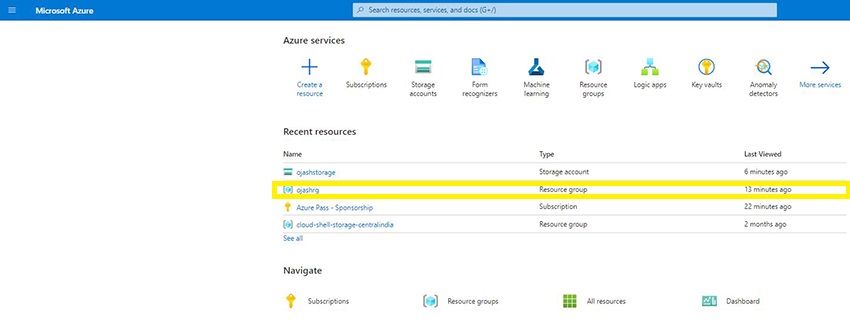 Visit the resource group you’ve created in the Azure Portal following the above tutorials.