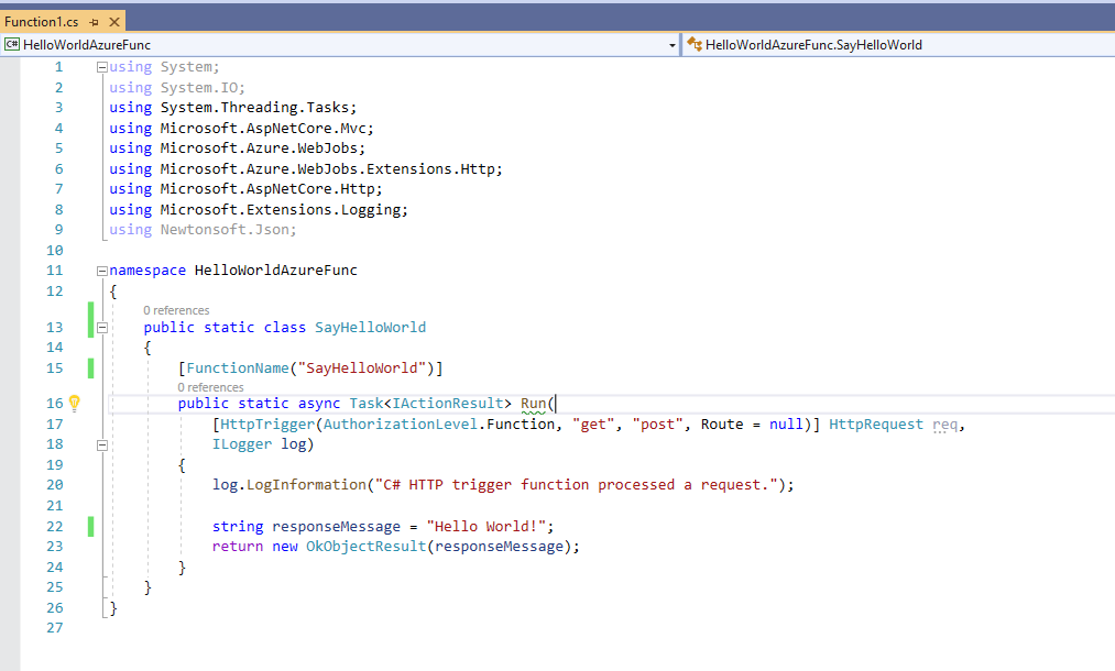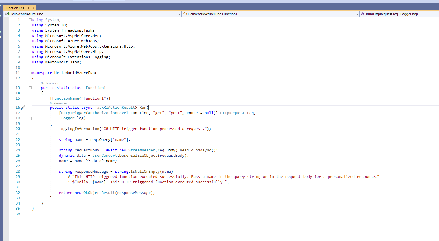 That's it. our first Azure functions app is ready. In our next article, we will learn, how to publish Azure functions.