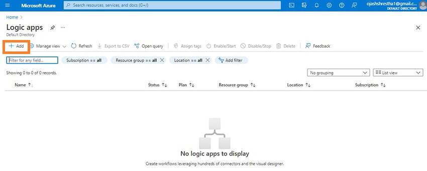 Once, the Logic App is setup with the Triggers and run, it becomes extremely active and can run trigger numerous times in a minute itself. To save ourselves from any charges to incur when we don’t want it running. We can simply click on Disable and later when we want it to function, we can click on Enable again.