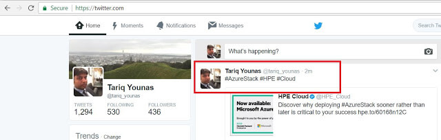 - Now from my Twitter account, I did tweet with hash tag #AzureStack.