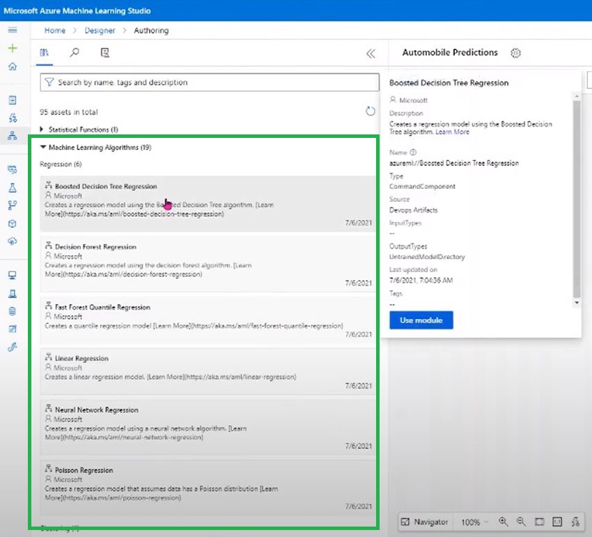 Moreover, we also have different algorithms such as Boosted Decision Tree Regression, Neural Network Regression, Linear Regression, and many more which are widely used in machine learning.