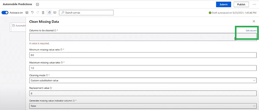 Now, Click on Clean Missing Data and Select Edit column to clean the specific column.