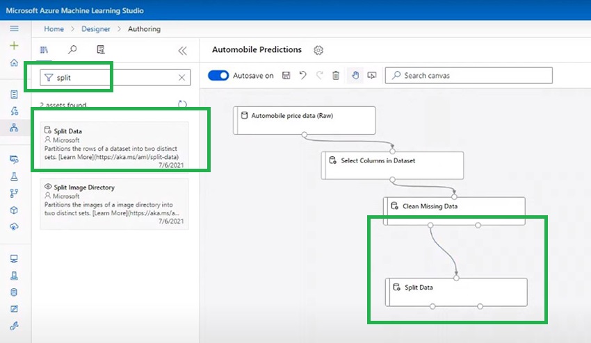 Now, we need to split the data for training and testing. On search bar, search for Split.