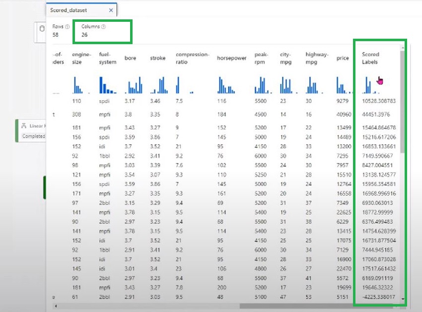 Now, if we check the scored dataset, we can see, there is a new column of Scored Labels. This is the predicted Price data we performed in this project.