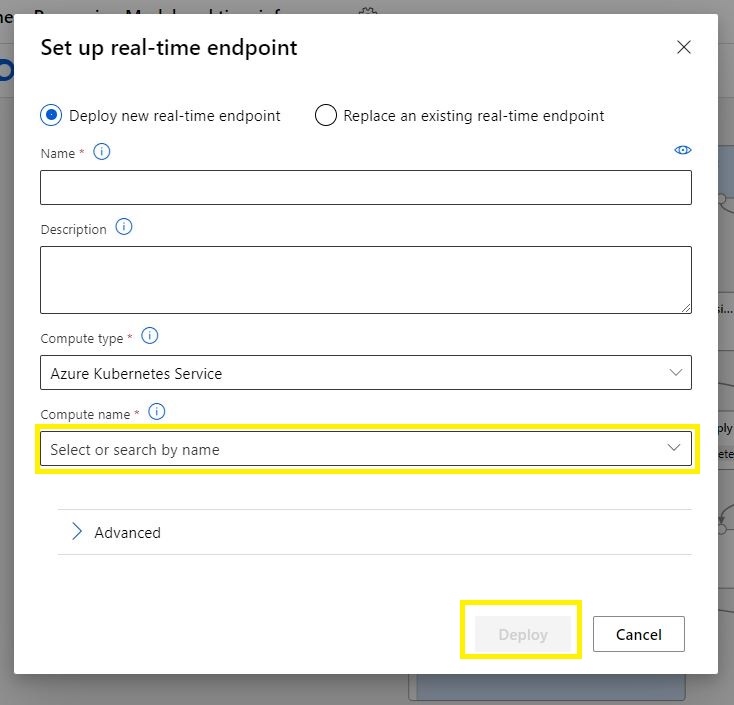 We can see the details to be filled. Under the Compute Name, we cannot select any resources. This is because the Compute Instances isn’t usable for deployment. We would need a inference cluster.