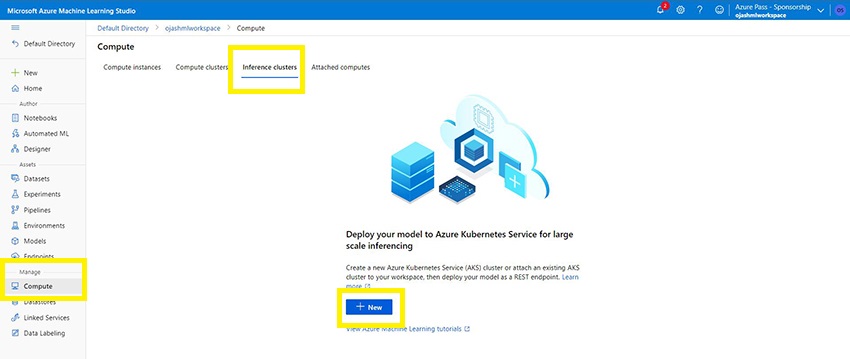The compute type would be Azure Kubernetes Service and select the Compute you’ve created which is the Kubernetes Service Inference cluster.