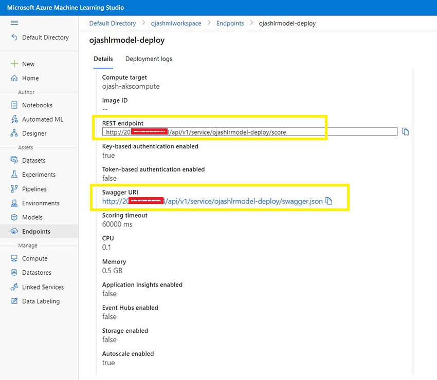 Once, it is completed, we can obtain the REST Endpoint and Swagger URL.