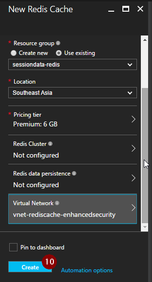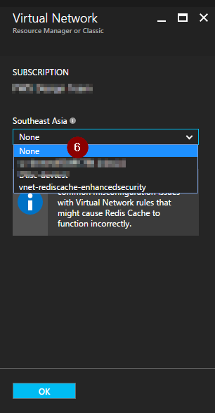 As shown below, select the Virtual Network in which you would like to create Azure Redis Cache.