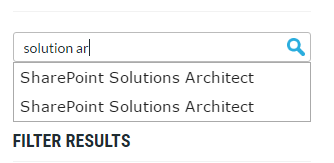 - Provide Search suggestions in the form of Auto Complete feature. Below is screen capture where the service is providing suggestions based on the keywords that the user is typing.