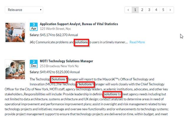 You search keywords are highlighted in each of the search results.