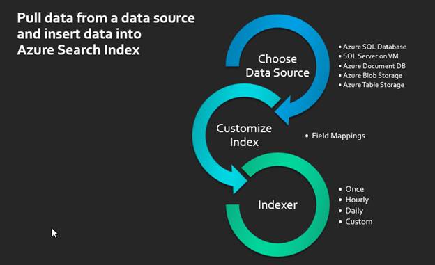 In this method, we don’t need to pass any data to Azure Search. We just need to connect these Data Sources to Azure Search. We would discuss about this method in detail in the upcoming articles.