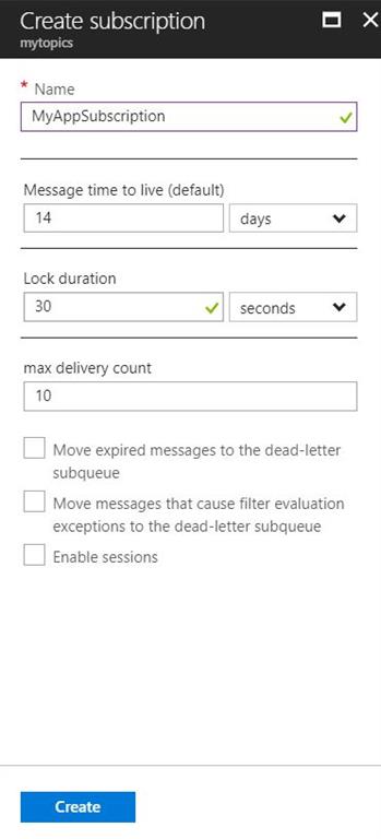 - var subClient = SubscriptionClient.CreateFromConnectionString(_serviceBusConn, _serviceBustopic, "MyAppSubscription");