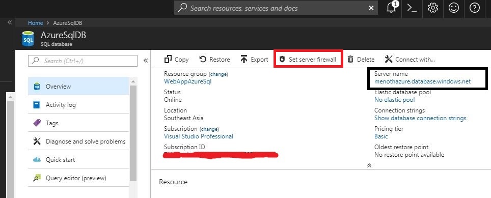 We need to setup a firewall rule for accessing our Azure Sql database in Azure Portal. So the SQL Database service creates a firewall at the server-level that prevents external applications and tools from connecting to the server. If we not set up any firewall rule in Azure SQL database portal, then we will get the following error.