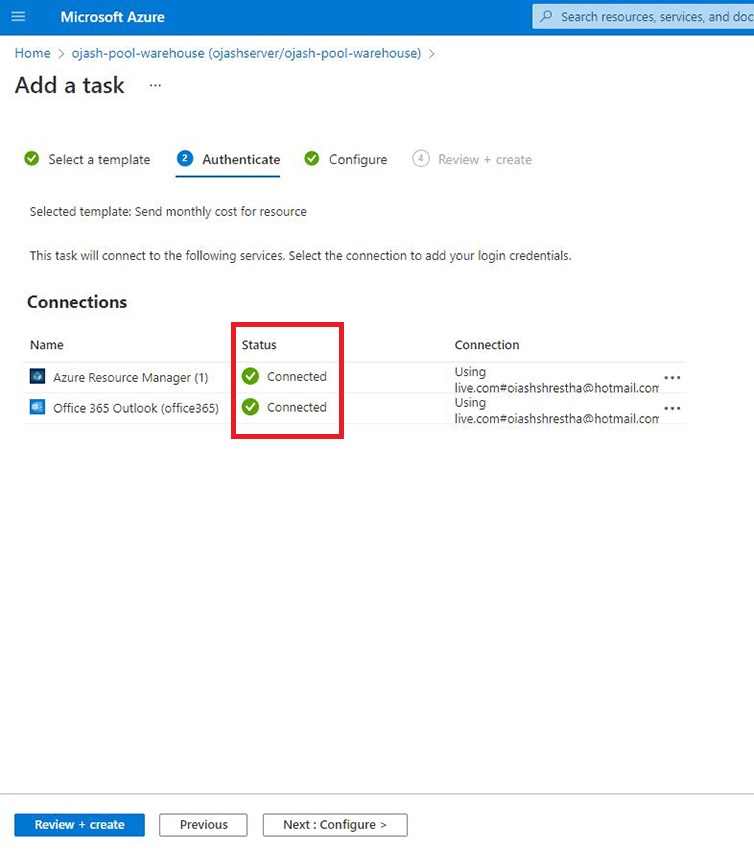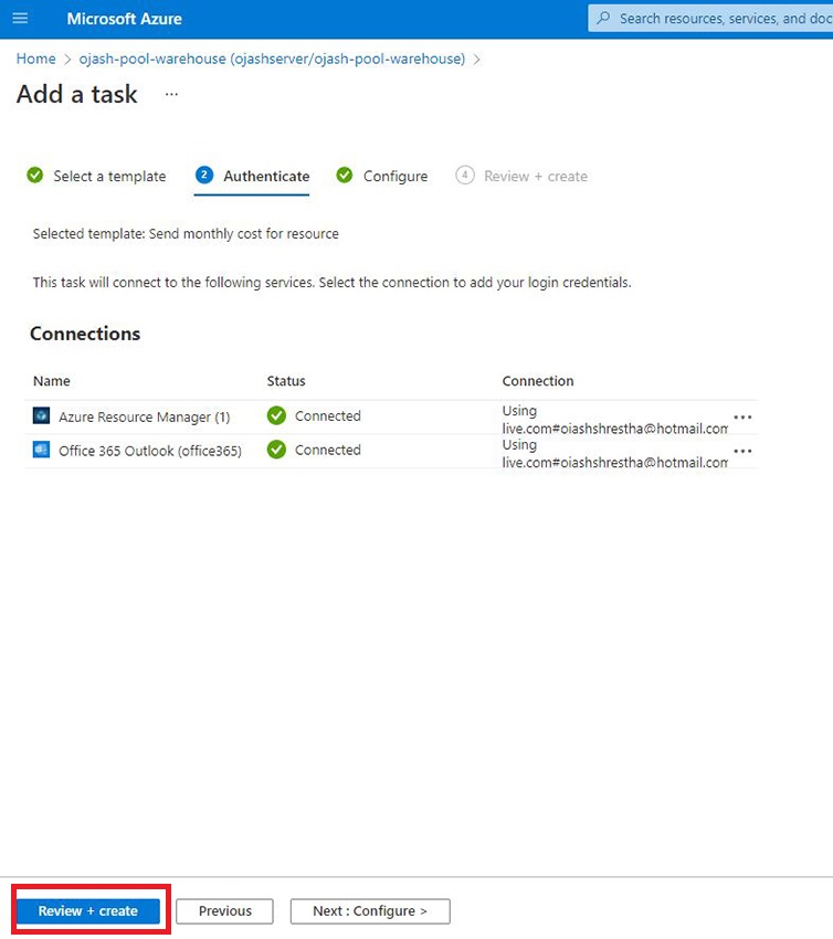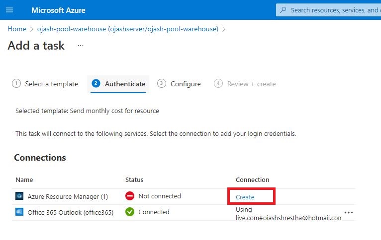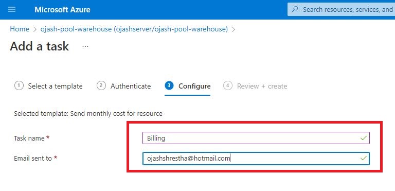 As the task is created, we’ll now be automatically emailed about our monthly billing to our email id that we added for the resources we used – here in our case the SQL Pool Data Warehouse.