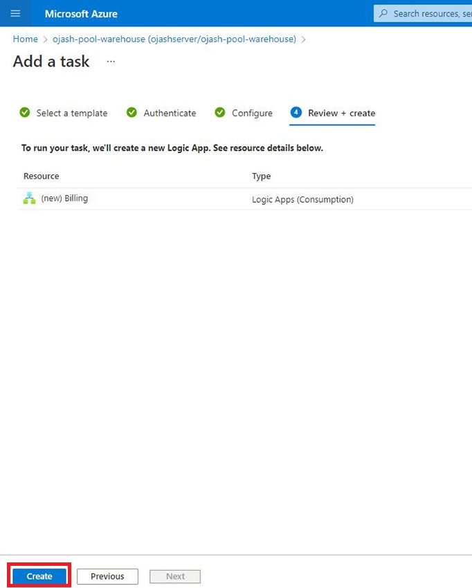 Now, we’ll be taken to Review + Create Page. Here, the Logic App will be in process to be created for our Billing. Click on Create.