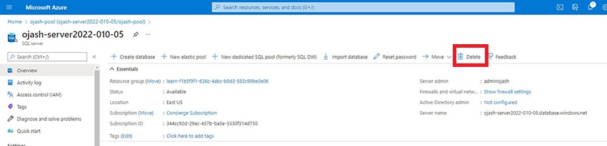 Here, as we are taken to the server page, we can click on Delete.