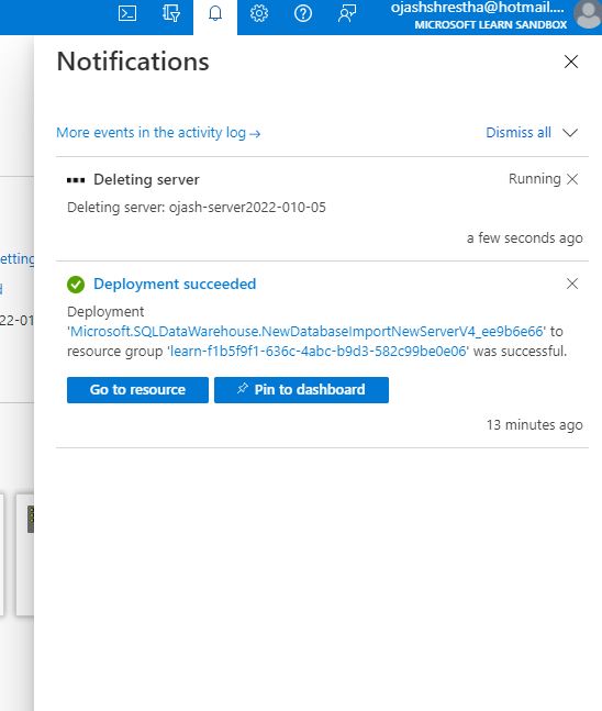 Once, we are prompted with the Success of Deletion, visit the home page of Azure.