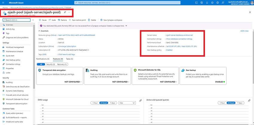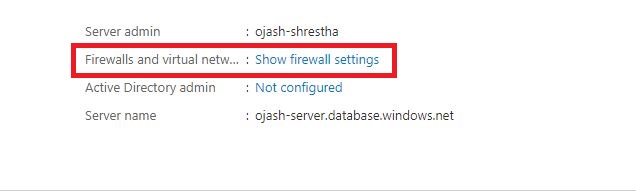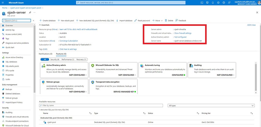 Now, we are taken to the sql-server details we created under the name ojash-server.