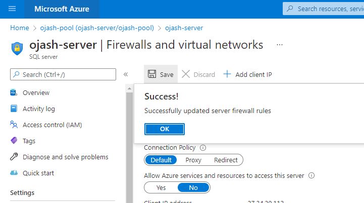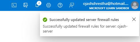 Finally, we will be notified about the success in updating our server firewall rules. With this, we have successfully learnt to create a server rule for our client IP in Azure Synapse Analytics.