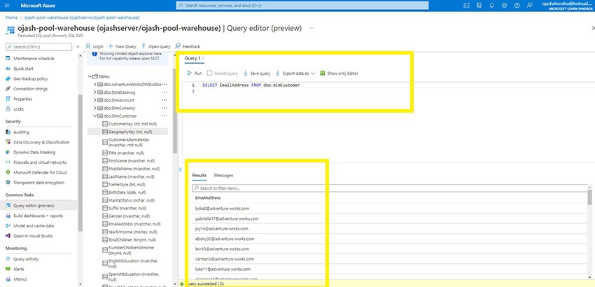 Now, let us learn to explore our data warehouse using the Query Editor in Azure.