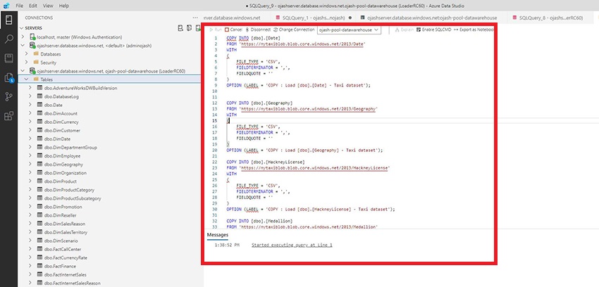 Finally, we are ready to load the dataset from Azure Blob Storage to our Datawarehouse.