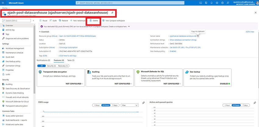 - Azure Synapse Analytics - Connect, Query and Delete Data Warehouse SQL Pool