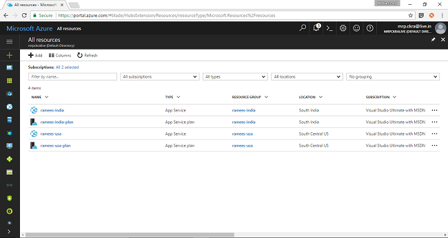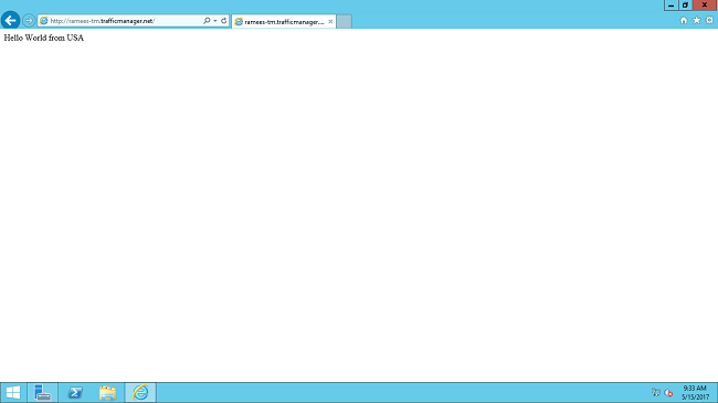 On testing by the traffic manager URL, I will be getting the following result which is from the Indian server as I am from India