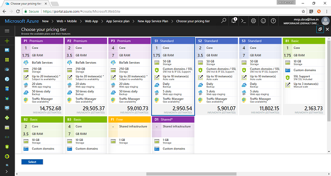 What I am going to do here is create two web apps with same contents in two different locations. You check this article on how to do the same. The only thing you have to take care is when you select the plan. As shown below only plans from standard have traffic manager feature