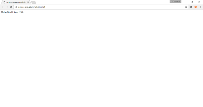 Here I am just giving a text, Hello World from India and Hello World from USA, to both the websites to identify which server we are accessing. In production, we will be using the same content and there the user needs to be aware of it. Here I am using just it for demo purposes.