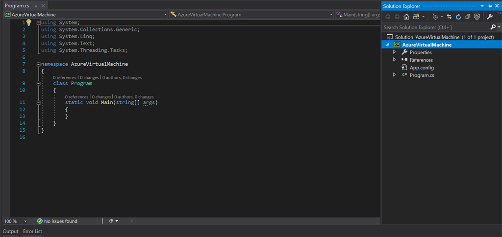 Create a new console application for .Net Framework and name it as AzureVirtualMachine. Your project must look like this: