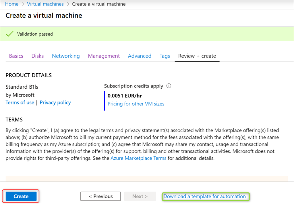 Ps.: You could also download the Virtual Machine template in order to automate the creating process with Azure ARM.