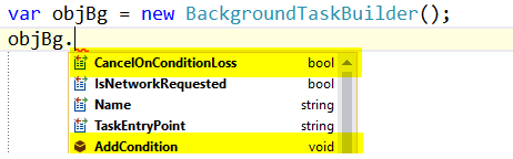 Note - HandlingBgTask class is a user defined class & it has been implemented in previous articles; this class registers the Background Task.