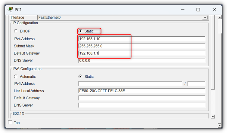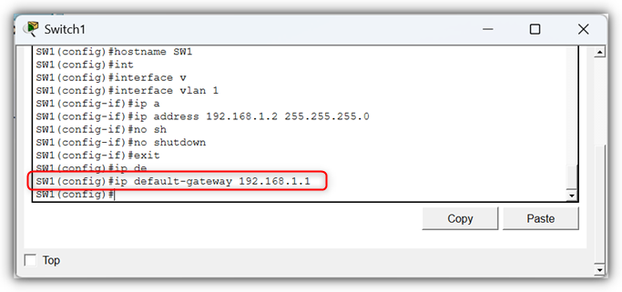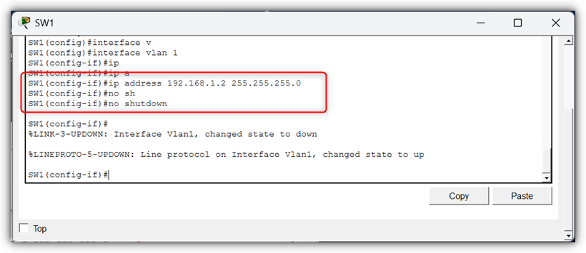 SW1(config-if)# ip address 192.168.1.2 255.255.255.0