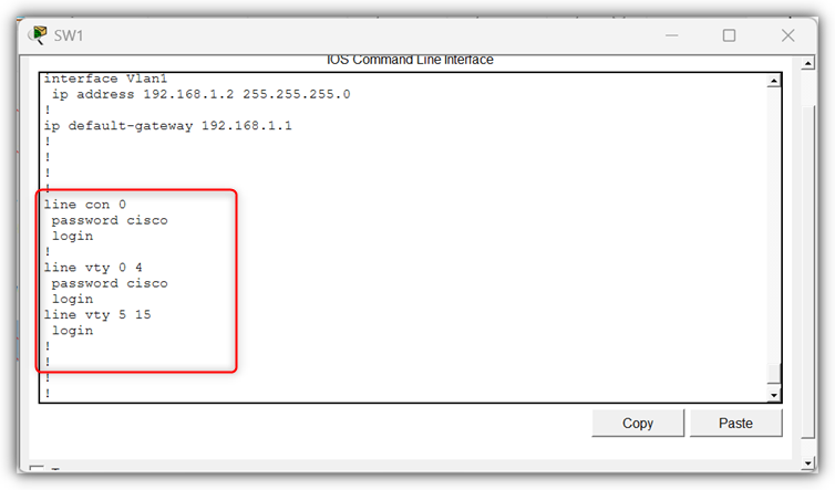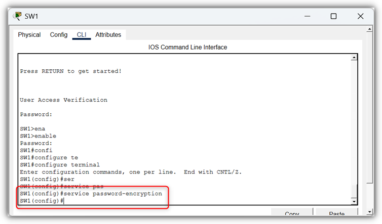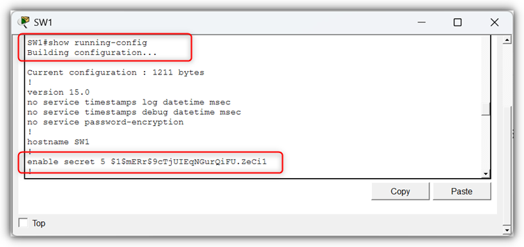 By default, passwords in the running-config and startup-config files are shown in plain text. This is not safe because anyone who sees the files can read the passwords.